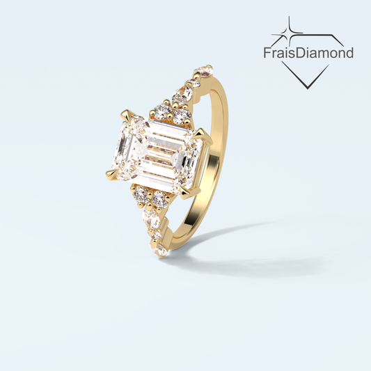 2.76 TCW Enchanted Harmony Emerald Cut cluster Moissanite Engagement Ring with Marquise cut and Round Side Stones