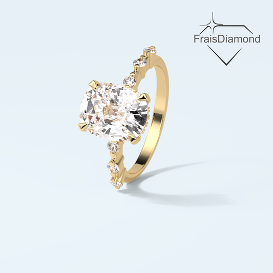 4.24 TCW Timeless Romance Cushion Cut floting bubble pave Moissanite Engagement Ring with Round cut Side Stones