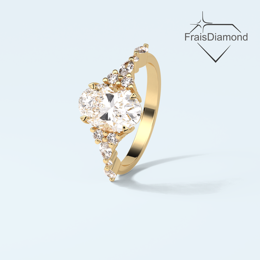 2.56 TCW Enchanting Elegance Oval cut pave Moissanite Engagement Ring with Marquise cut and Round Side Stones