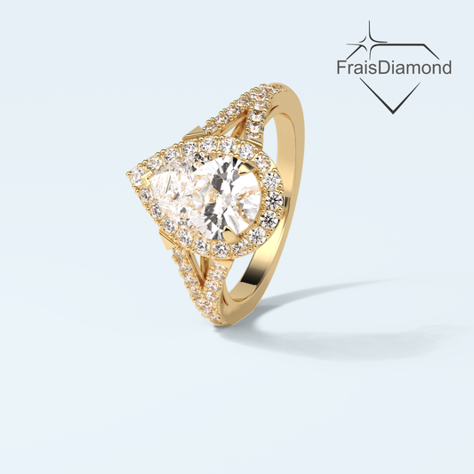 3.78 TCW Radiant Blossom Pear Cut halo pave Moissanite Engagement Ring with Round cut Side Stones