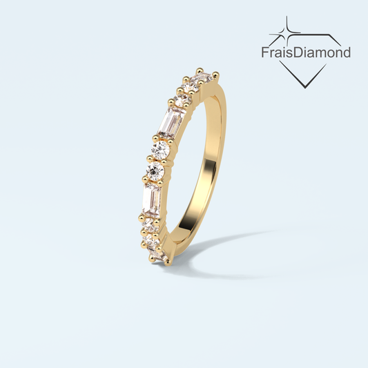 0.64 TCW Elegant Union Baguette and Round shaped half eternity Moissanite Wedding Band