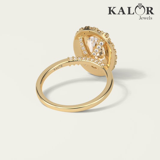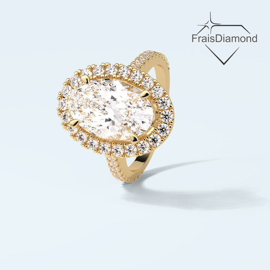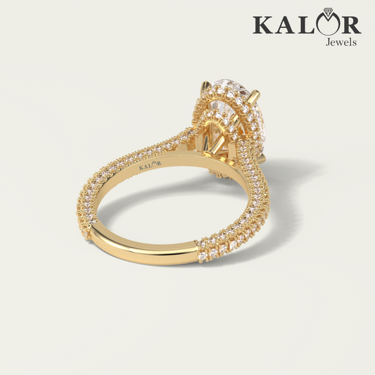 3.75 TCW Timeless Serenade Oval Cut halo Moissanite Engagement Ring with Round cutSide Stones