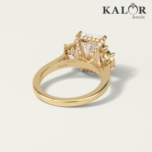 2.38 TCW Radiant Allure Emerald Cut Moissanite Hidden Halo Engagement Ring with Round cut Side Stones