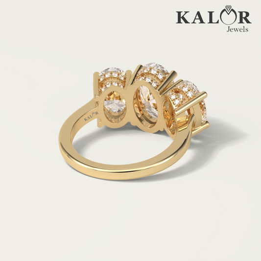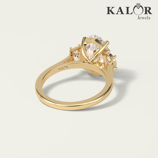 6.0 TCW Enduring Elegance Oval Cut hidden three stones Moissanite Engagement Ring with Oval cut and Round cut Side Stones