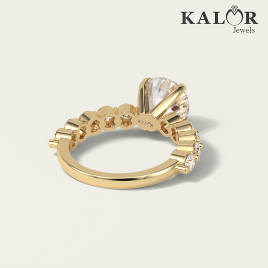 2.15 TCW Timeless Elegance Oval cut pave Moissanite Engagement Ring with Round cut Side Stones