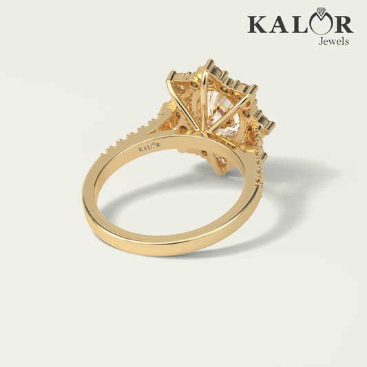 3.78 TCW Radiant Blossom Pear Cut halo pave Moissanite Engagement Ring with Round cut Side Stones