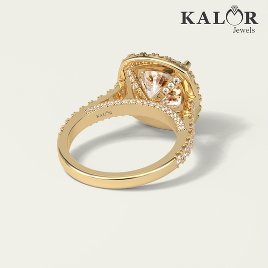 2.44 TCW Eternal Charm Cushioncut halo&pave Moissanite Engagement Ring with Round cut Side Stones